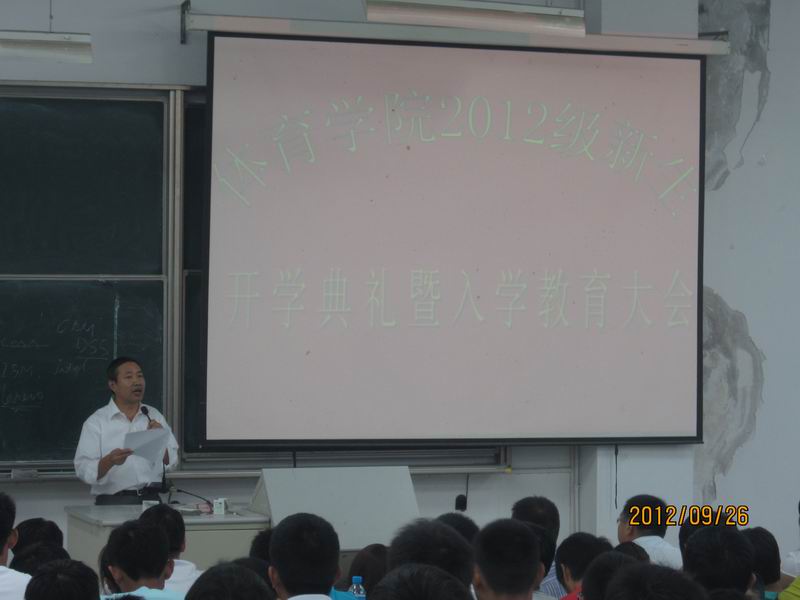 为全面贯彻学校成长成人成才成功的“四成”教育理念,帮助2012级新生顺利完成新环境中的角色适应和转变,学会快乐成长、健康成人,帮助新生树立正确的世界观、人生观和价值观,引导学生奋发向上、立志成才,走向成功,9月26日下午,我院在龙山校区文津楼隆重召开2012级新生开学典礼暨入学教育大会。博鱼官方(中国)总部全体党政领导,学院党政办公室、团学工作办公室、教学科研办公室负责同志,各教研室主任以及2012级新生辅导员出席大会。会议由院党总支副书记韦长发主持。