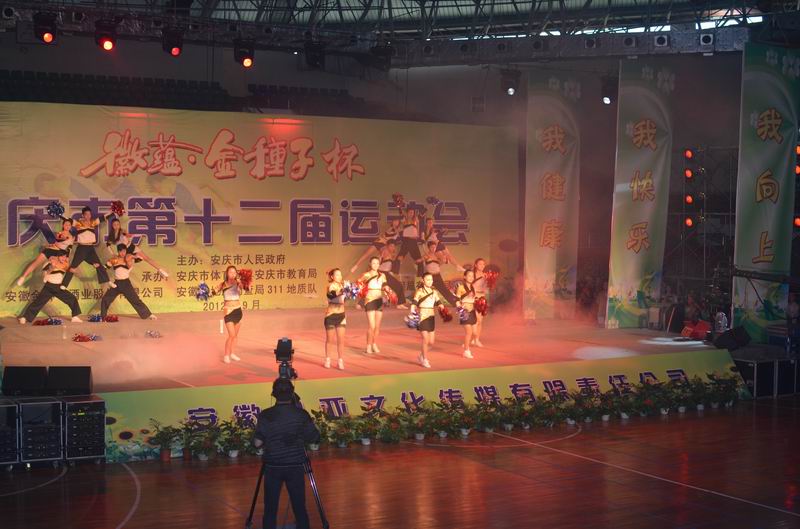9月15日上午,安庆市第十二届运动会在市体育馆隆重开幕。我院2009级健美操专选班二十余位同学在潮芳老师的带领下,参加了本次运动会开幕式文艺演出。我院学生精湛的表演水平赢得了现场观众一阵阵热烈的掌声。