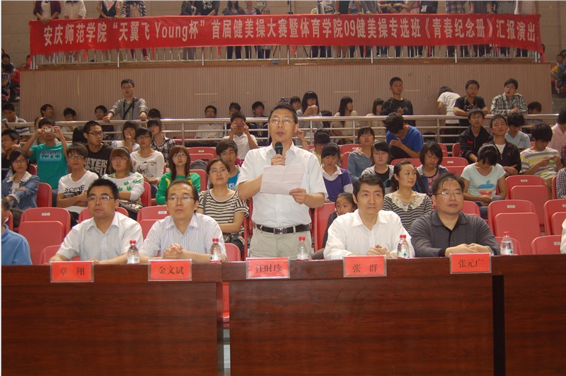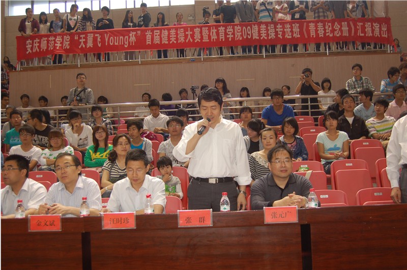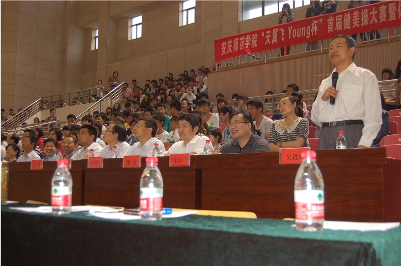 5月19日上午,我校在体育馆举行了安庆师范学院“天翼飞Young”杯首届健美操大赛。党委委员、副院长、校体委主任张群教授,党委委员、副院长汪时珍教授,教务处、学生处、博鱼官方(中国)总部的相关负责人应邀参加了开幕式。开幕式由博鱼官方(中国)总部党总支书记吴毅安同志主持。