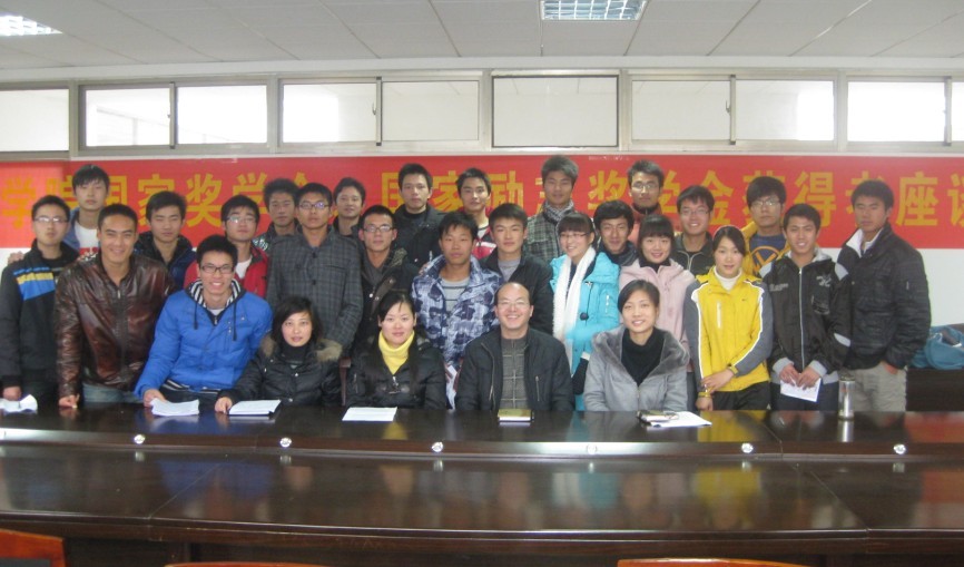 座谈会上,学院党总支副书记韦长发为获奖同学发放了银行卡,并发表了讲话。韦长发副书记首先对获得2010—2011学年国家奖学金和国家励志奖学金的同学表示了祝贺。同时,对获奖的全体同学提出了五点希望和要求:一是要志存高远,牢记胡锦涛总书记对青年大学生的三点希望和温家宝总理对广大青年的殷切期望,做到既仰望星空又脚踏实地,把个人的理想追求与国家的命运结合起来,不断实现自己的人生价值;二是要努力抓住在大学学习这一人生最宝贵的黄金时期,积极发挥自己的聪明才智,不断地丰富自我、完善自我,超越自我;三是要继承和发扬学校八字校训——“敬敷世范、勤学笃行”,学习上勤奋刻苦,生活上艰苦朴素,坚持不懈,以自己的言行影响和带动身边的同学,促进班风、学风建设;四是要学会感恩,回报社会,要心怀父母养育之恩,老师培育之恩,国家和社会关心资助之恩,以自己的知识和才能回报父母,回报学校,报效国家;五是要合理利用好奖学金,将奖学金真正用于自己学习和生活所需要的方面。