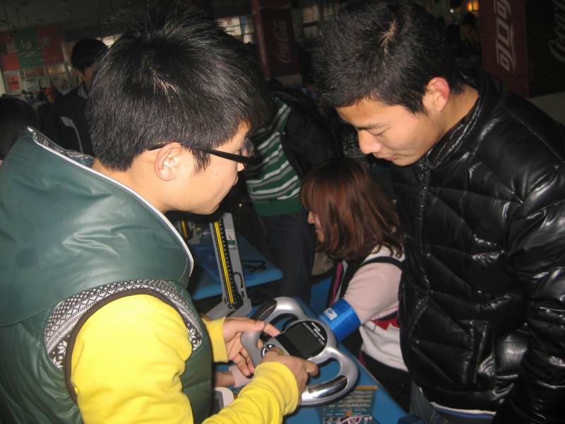3月3日上午,博鱼官方(中国)总部的志愿者们早早在龙山校区安苑食堂门前搭起了咨询台,摆放了血压计等测试仪器,我院学生自主创业开办的弗莱卡校园健身会所也带来了专业的健身器械。活动过程中,广大师生员工纷纷前来咨询有关健身的方法、进行血压测量和检测体脂含量等。我院参与活动的志愿者们耐心细致地进行讲解,认真仔细地为大家进行测量,并根据检测结果告知大家生活中应该注意的事项,得到了大家的广泛欢迎和一致好评。